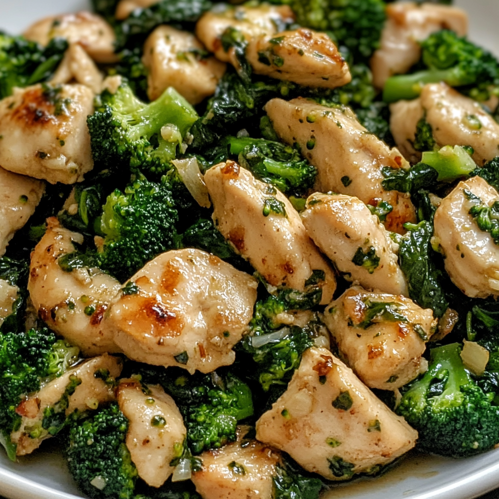 The beauty of this recipe lies in its simplicity and the way it highlights fresh ingredients. By flash-sautéing the broccoli and wilting the spinach at the very end, you maintain a perfect balance of textures—from the slight crunch of the florets to the tender, savory chicken. It is a restaurant-quality “superfood” skillet that is remarkably easy to prepare, making it a go-to choice for fitness enthusiasts or anyone needing a refreshing, energy-boosting dinner.
