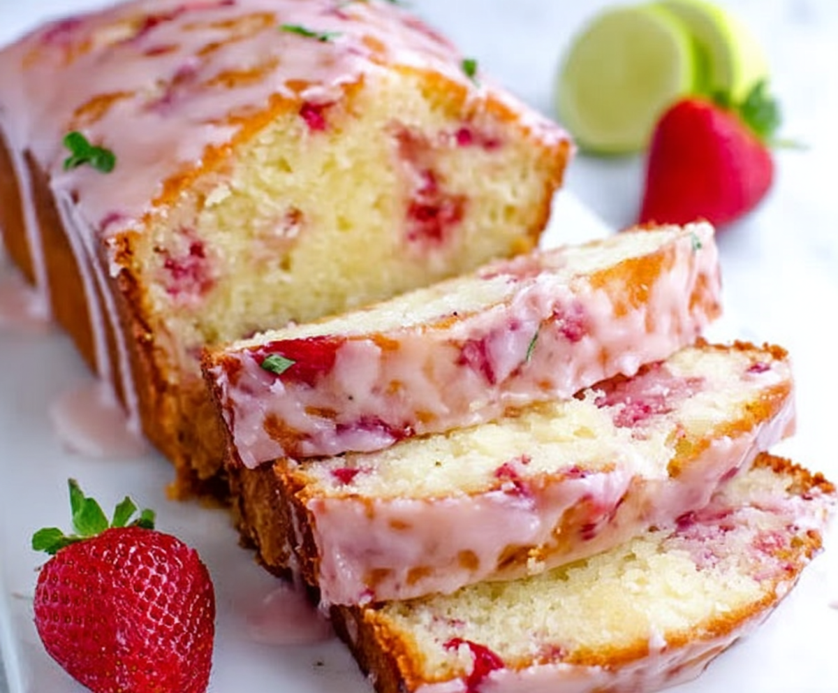 Instead of artificial flavoring, this recipe uses real strawberries—fresh or frozen—reduced into a thick, flavorful purée that infuses every bite with natural sweetness and color. The added moisture from the berries ensures the cake stays soft for days, while the buttery base provides that classic pound-cake richness. Drizzled with a fresh strawberry glaze, this cake becomes irresistible, visually stunning, and full of fruity aroma.