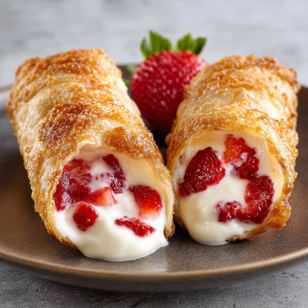 Strawberry Cheesecake Stuffed Eggrolls are a fun, irresistible dessert that combines the creamy richness of cheesecake with the crispy crunch of golden-fried eggroll wrappers. Sweet strawberry filling and smooth cream cheese are wrapped together, fried until perfectly crisp, and often dusted with powdered sugar or drizzled with sauce for an over-the-top finish. Each bite delivers a contrast of textures that makes this dessert impossible to resist.