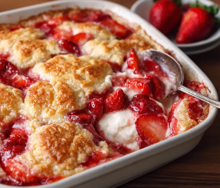 If you love strawberry desserts and creamy textures, this cobbler is a must-try recipe that delivers comfort, flavor, and visual appeal in every spoonful.