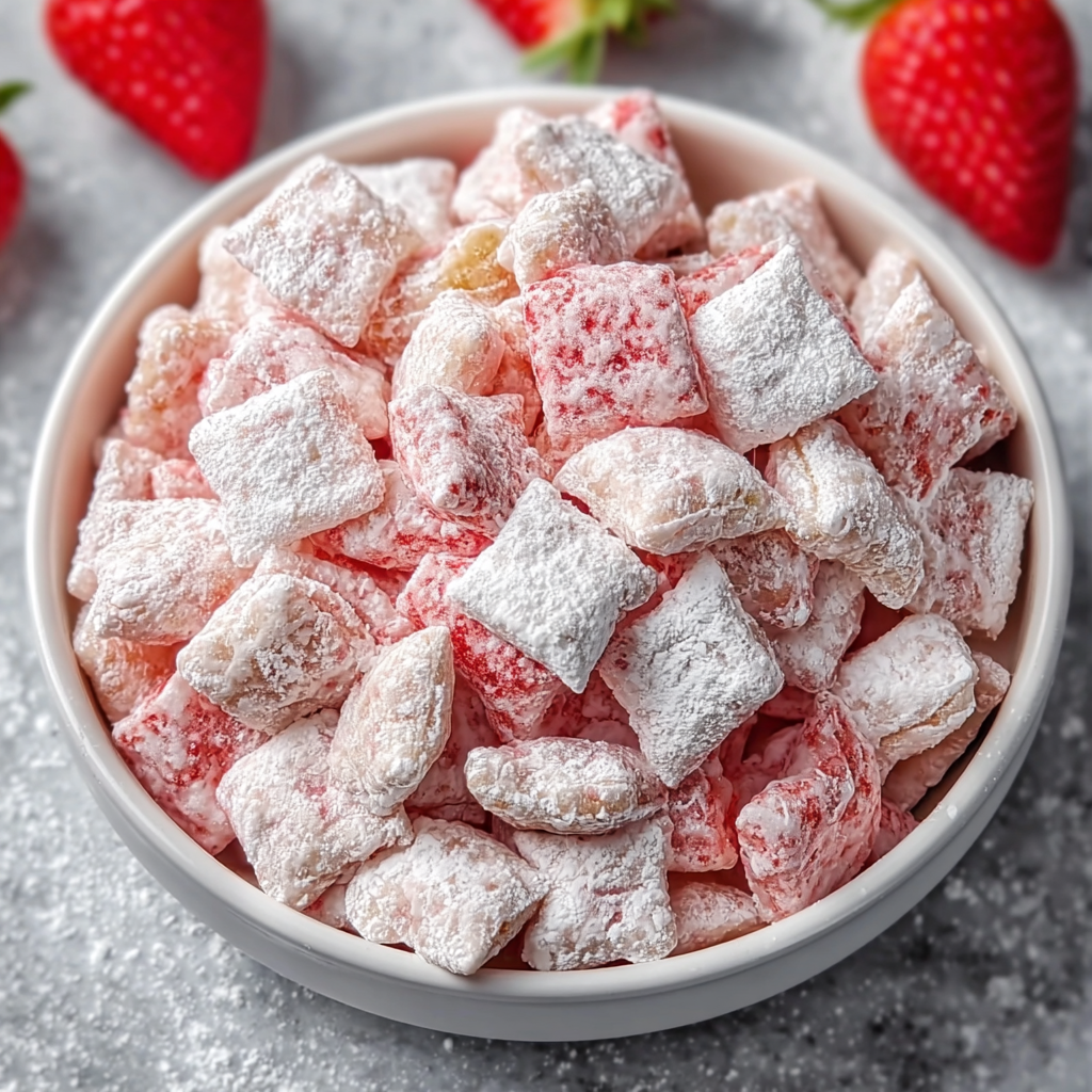 If you’re looking for a playful, crowd-pleasing snack that looks just as good as it tastes, Strawberry Shortcake Puppy Chow is guaranteed to be a hit.