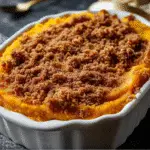 This dish is beloved for its perfect balance of flavors and textures: smooth mashed sweet potatoes, subtle warmth from cinnamon and nutmeg, and a topping that adds a satisfying crunch. The casserole can be made ahead of time, making it convenient for large gatherings, yet indulgent enough to feel like a treat.