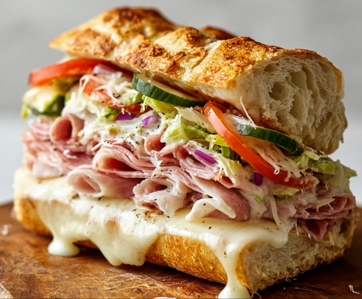 The Ultimate Italian Grinder Sandwich is bold, hearty, and packed with flavor in every single bite. With its perfect blend of creamy grinder salad, savory Italian meats, melted provolone, and tangy banana peppers, this sandwich delivers serious deli-shop quality right from your own kitchen. Whether you’re making lunch for the family, prepping meals for the week, or feeding a hungry crowd, this grinder is guaranteed to become a favorite. It’s simple, customizable, and unbelievably delicious—everything a great sandwich should be.