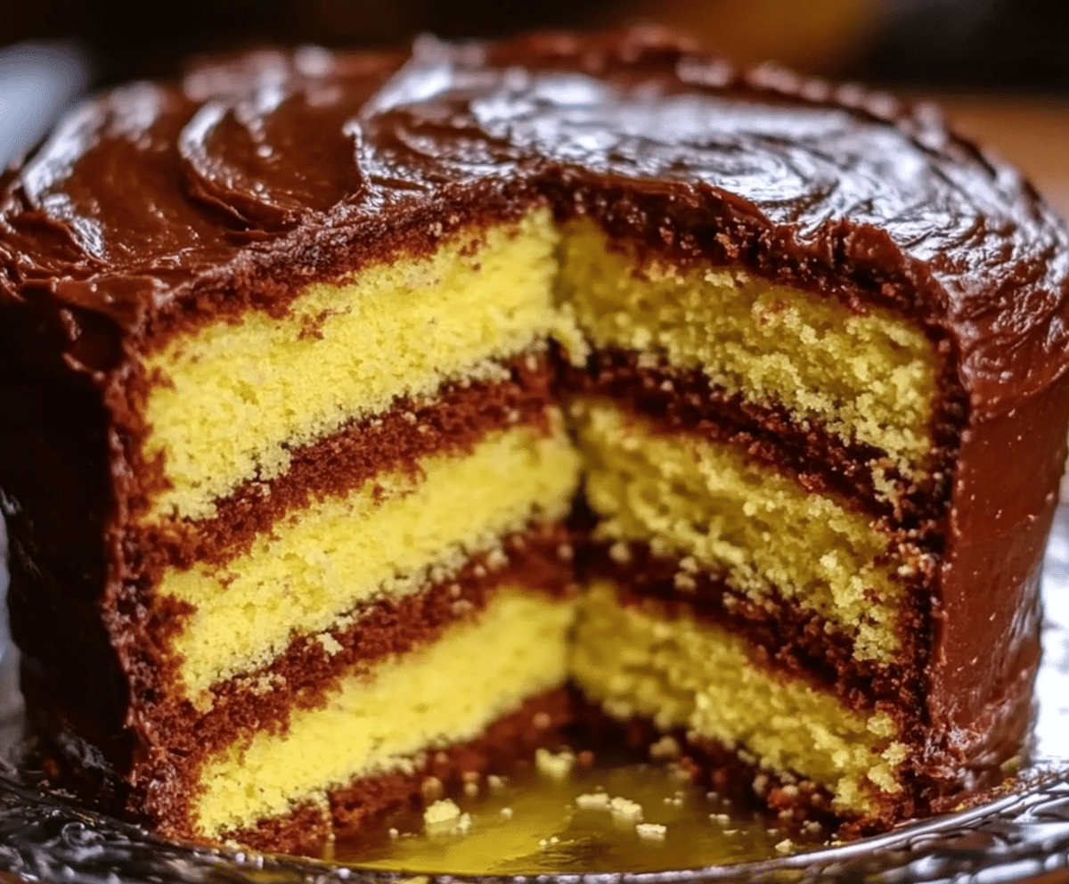 What makes this yellow cake special is its classic Southern bakery style—heavy on butter, full of real eggs, and whipped to fluffy perfection for tall, gorgeous layers. The cake rises evenly, slices cleanly, and holds up to any frosting you love, whether it’s chocolate, buttercream, cream cheese, or caramel. This is the kind of recipe people save for years, passing it down as a trusted family favorite.